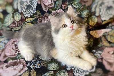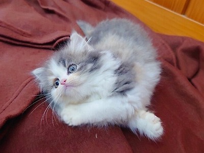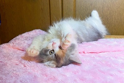 特徴 人気のパステル三毛の女の子です! まるでぬいぐるみのようなふわふわクリクリの毛並みです♡ とっても人懐こい人間大好きちゃんなのですぐ仲良くなれるはずですよ♡