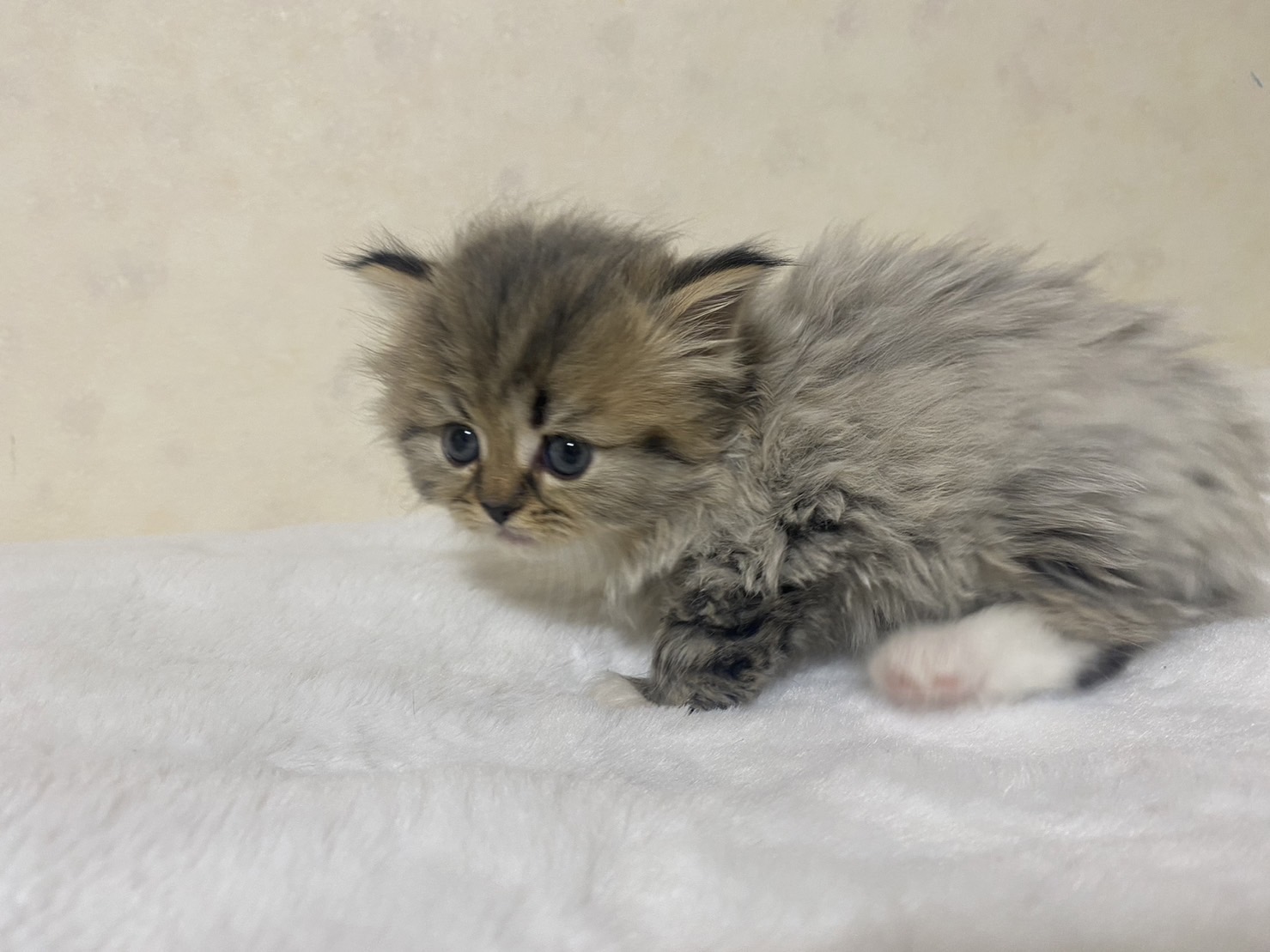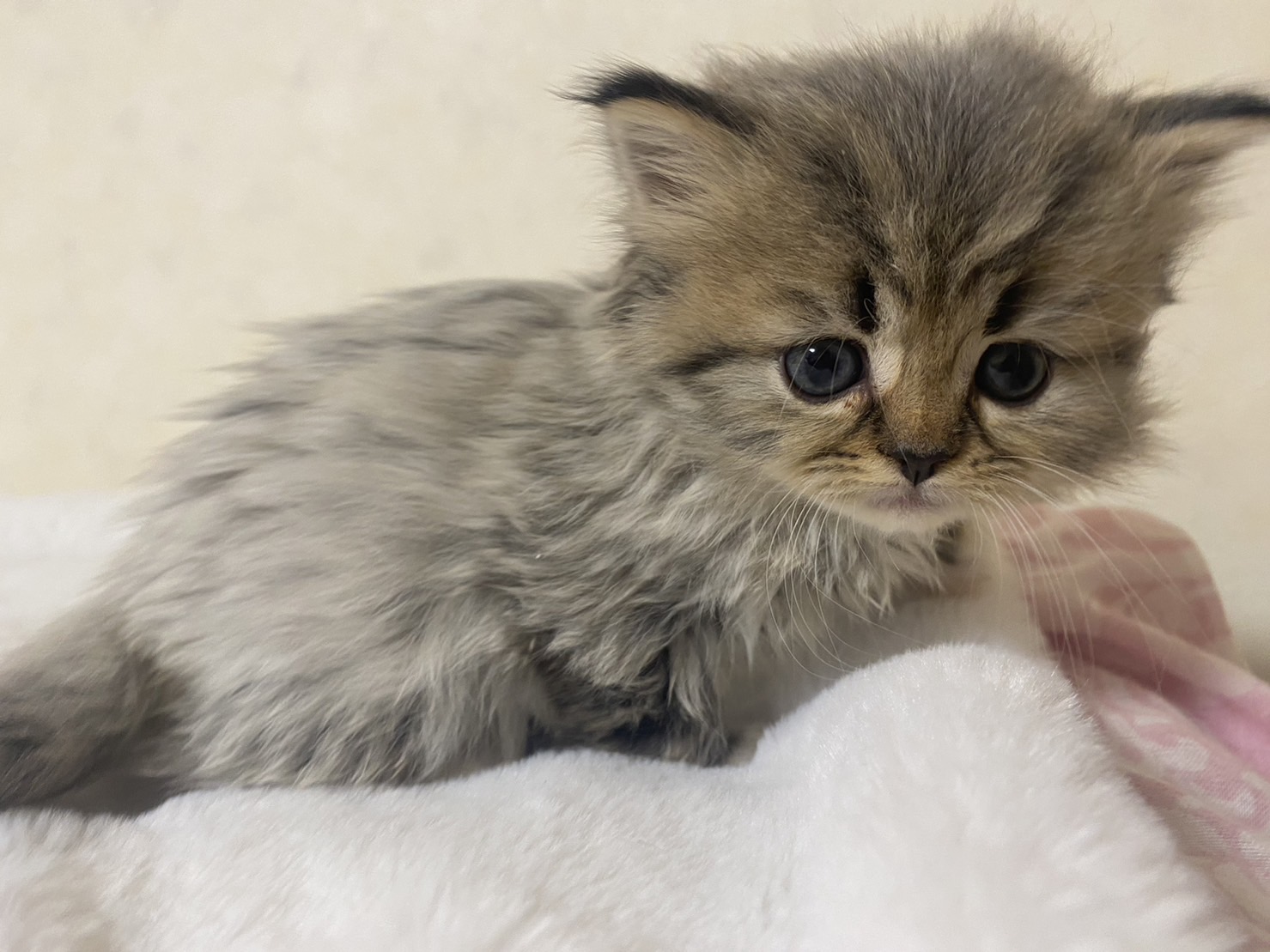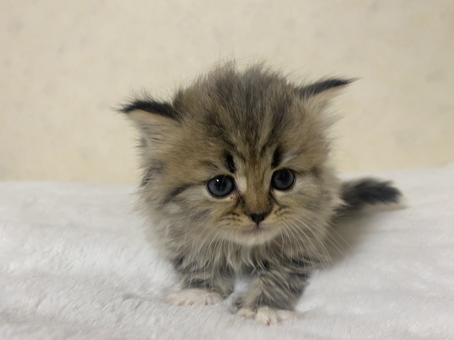 | 特徴 | 唯一の男の子 ブラウンタビーまたはシェーデットゴールデンでゴージャスな毛質です。※血統団体に正式名称を問い合わせ中です | ||