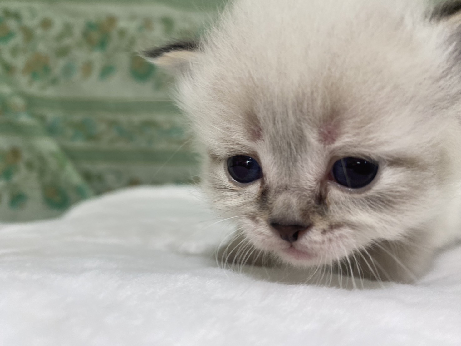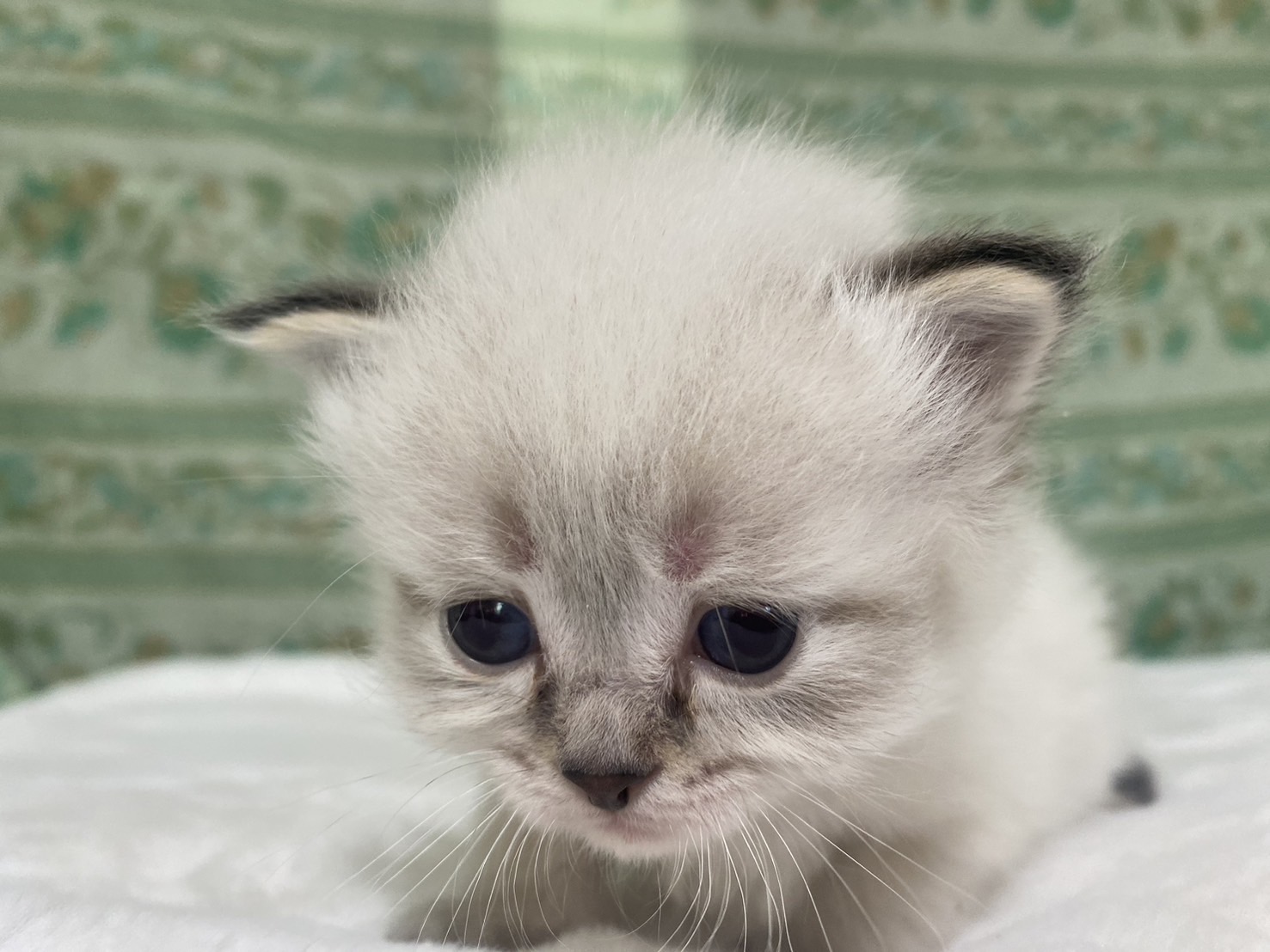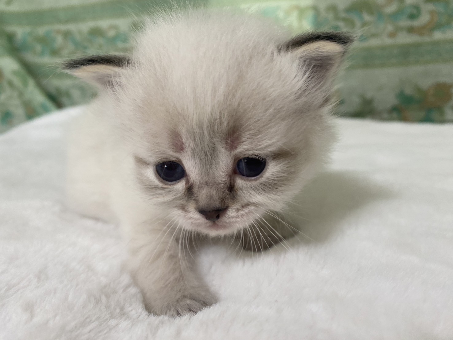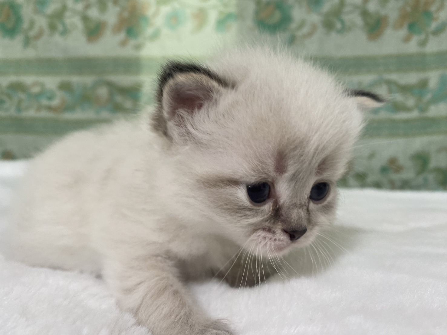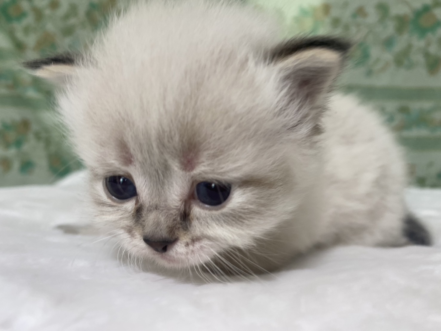| 特徴 | 珍しいネヴァマスカレードの5兄妹の男の子です!真っ白フワフワなボディに仮面(マスカレード)のような模様と綺麗なブルーアイがまるで宝石のように高級感ある猫ちゃんです。 | ||