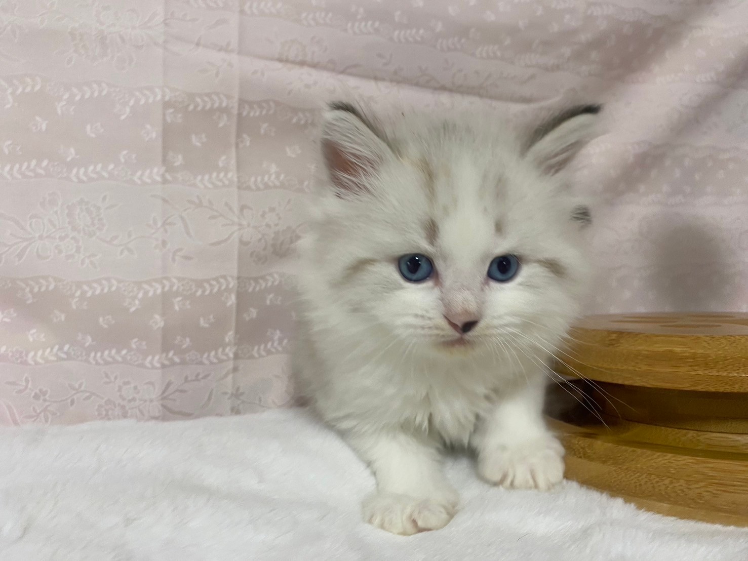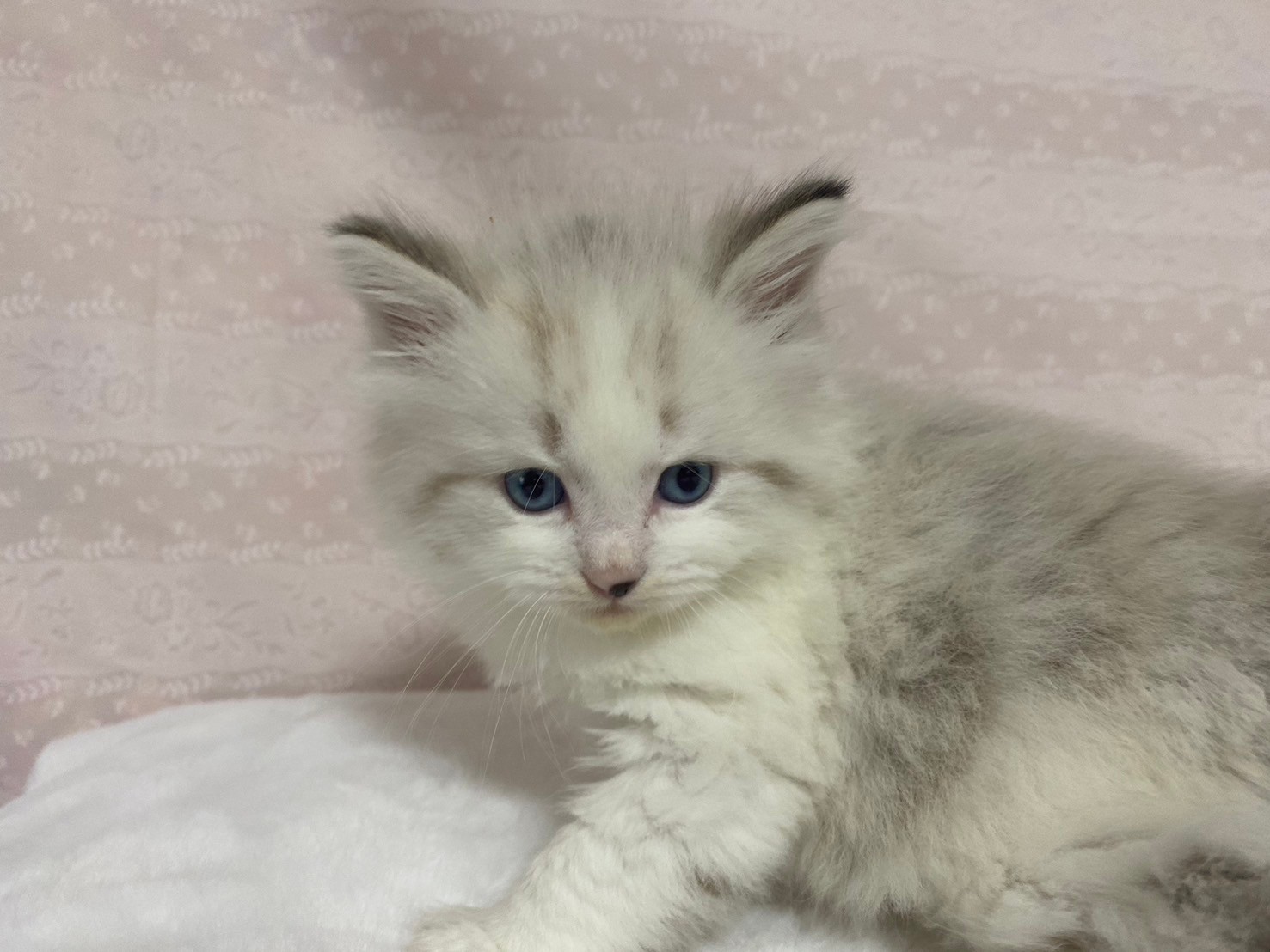 | 特徴 | 珍しいネヴァマスカレードの4兄妹の男の子です! 真っ白フワフワなボディに仮面(マスカレード)のような模様と綺麗なブルーアイがまるで宝石のように高級感ある猫ちゃんです。 とても落ち着きのある男の子です。 |
