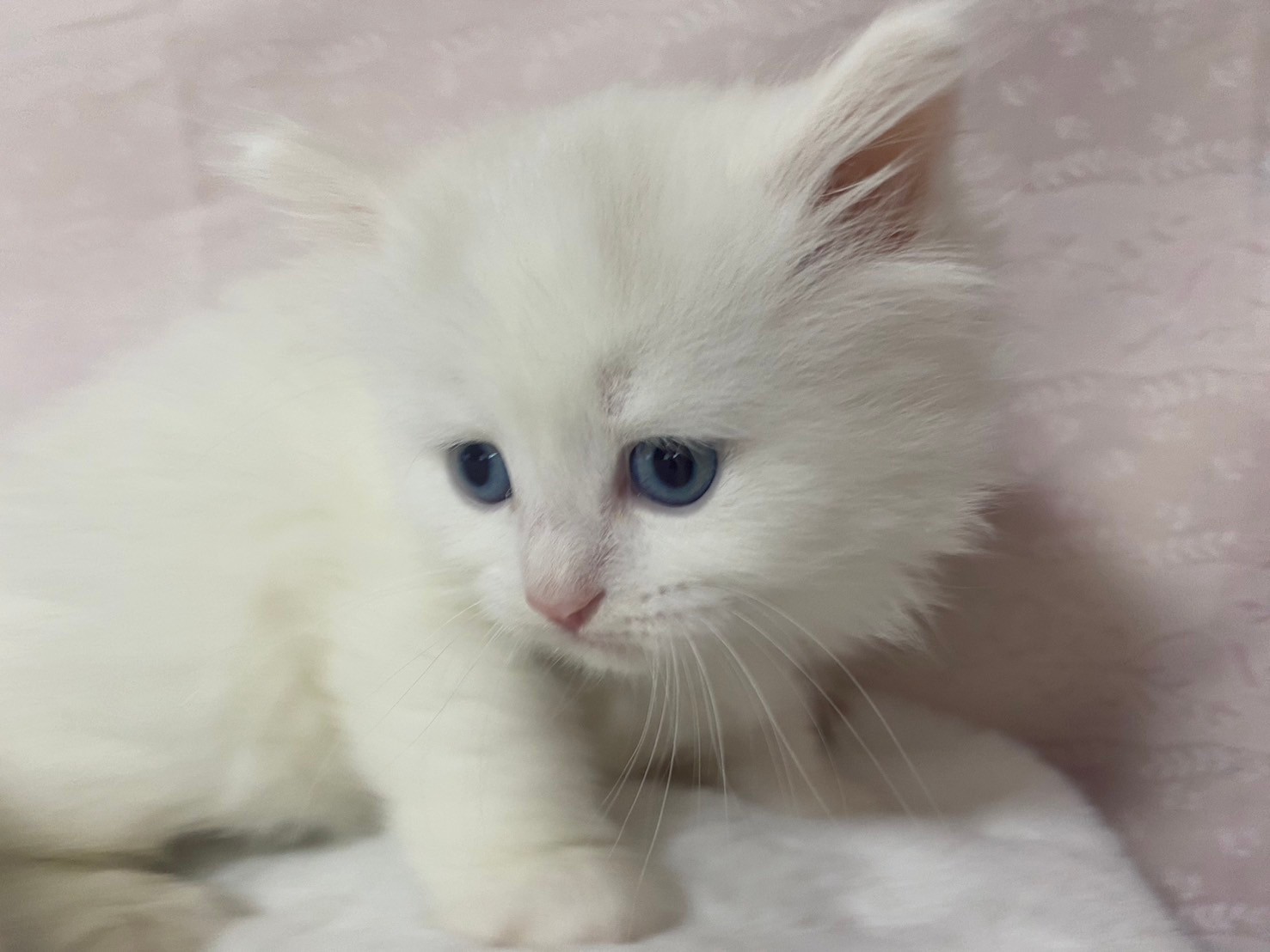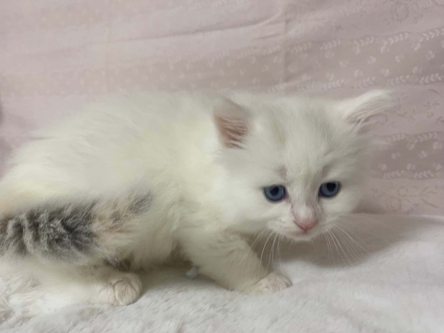 | 特徴 | 珍しいネヴァマスカレードの4兄妹です! 真っ白フワフワなボディに仮面(マスカレード)のような模様と綺麗なブルーアイがまるで宝石のように高級感ある猫ちゃんです。 4兄妹の紅一点!可愛らしい女の子です。 |