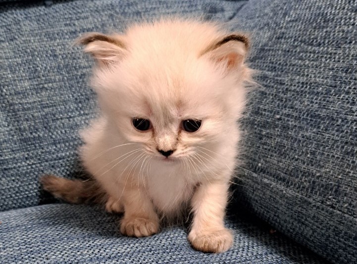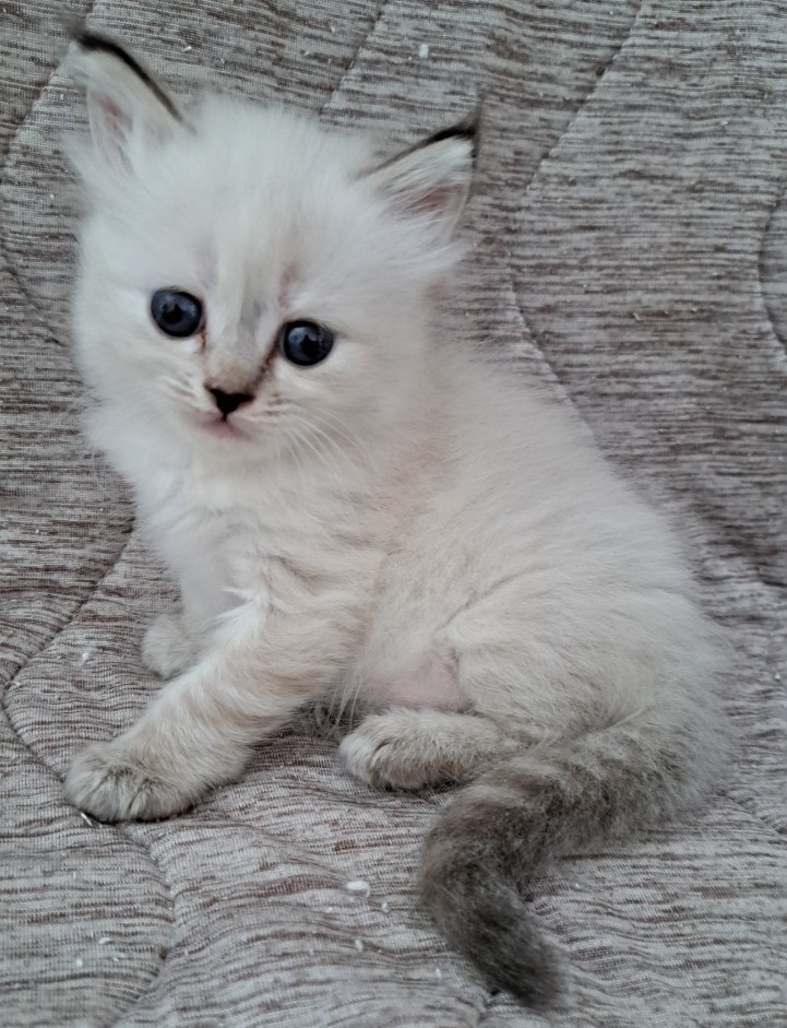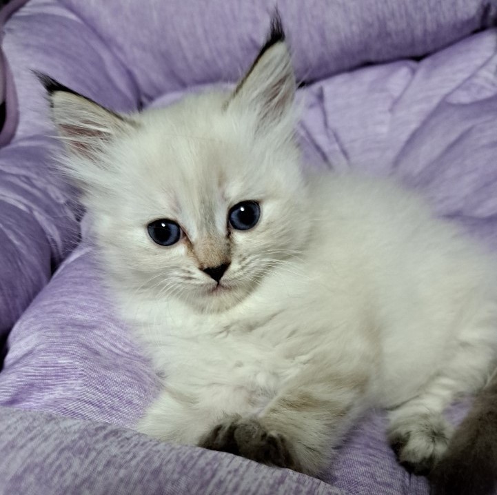 | 特徴 | 珍しいネヴァマスカレードの女の子! 毛並みは真っ白フワフワなトリプルコートでシルクの触り心地です。 綺麗なブルーアイがとても印象的な高級感ある猫ちゃんです。 黒い鼻と濃いポイントカラーが特徴的な活発な女の子です。 |