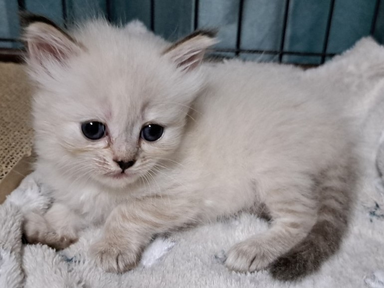 | 特徴 | 珍しいネヴァマスカレードの男の子! 毛並みは真っ白フワフワなトリプルコートでシルクの触り心地です。 綺麗なブルーアイがとても印象的な高級感ある猫ちゃんです。 黒い鼻と顔の模様が特徴的なやんちゃで元気いっぱな男の子です。 |