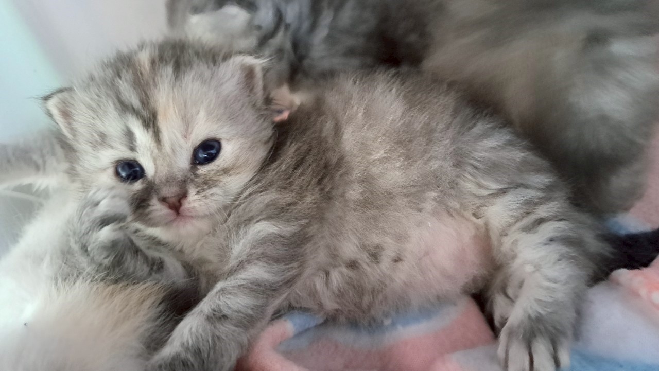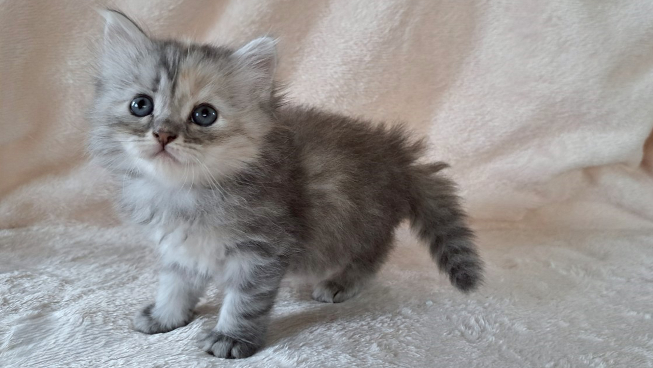 | 毛色 | ブルーシルバーパッチドタビー&ホワイト | ||