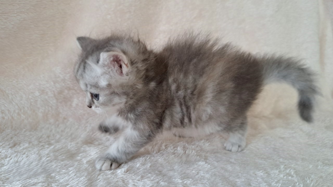 | 毛色 | ブルーシルバーパッチドタビー&ホワイト | ||